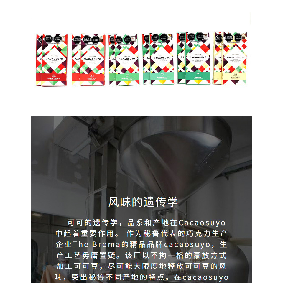 Peru Imported 70g Cacaosuyo Pure Dark Chocolate Block Milk Silky Chocolate Global Gold Brand