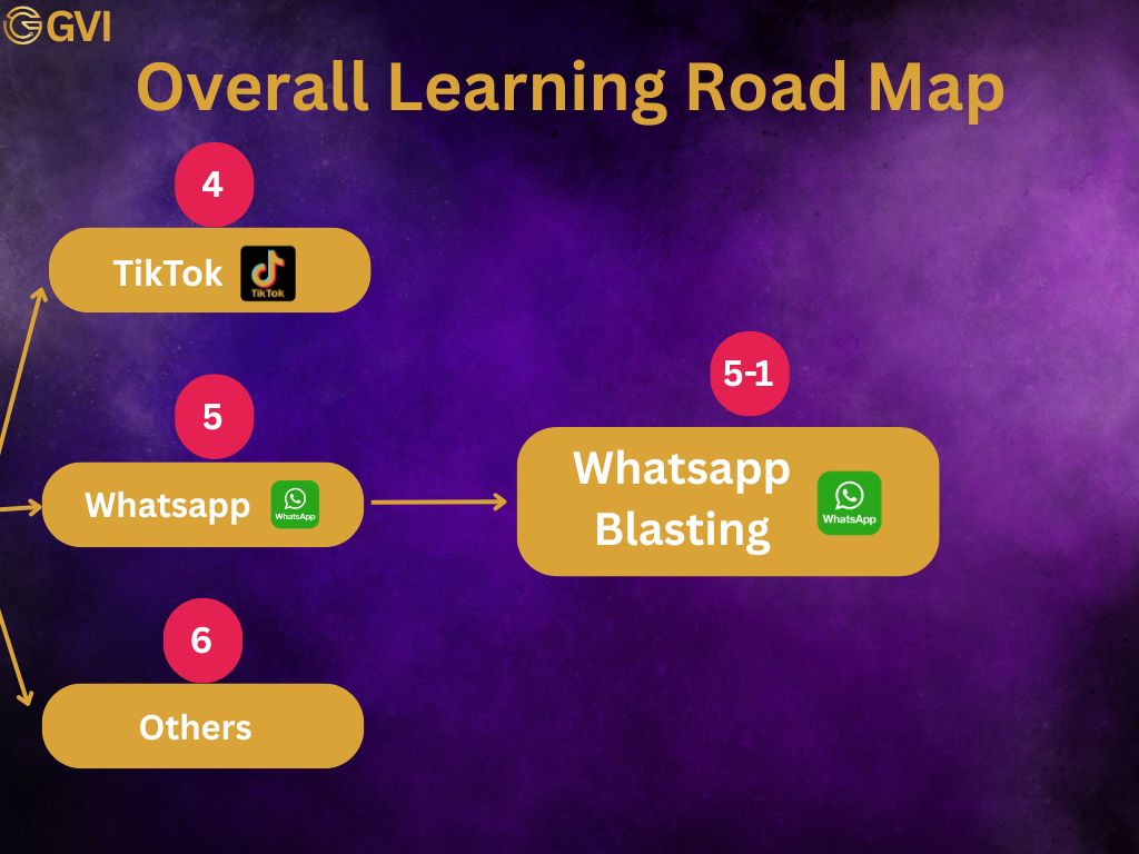 GVI is a huge ecosystem, we have many different area to work together. Too many things to learn and explore. We suggest that you start with chapter 1 and 2 first, after that you shall go for chapter 5, whatsapp marketing.