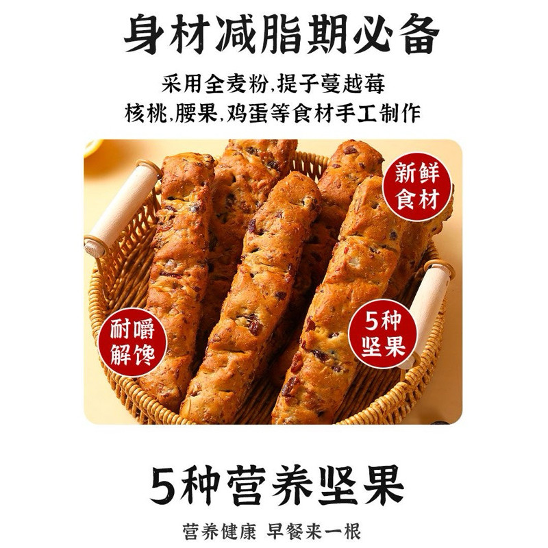 全麦蜂蜜坚果棒面包棒Whole wheat honey nut dried fruits bar breadsticks扭扭早餐代餐法式零食品果干 饱腹
