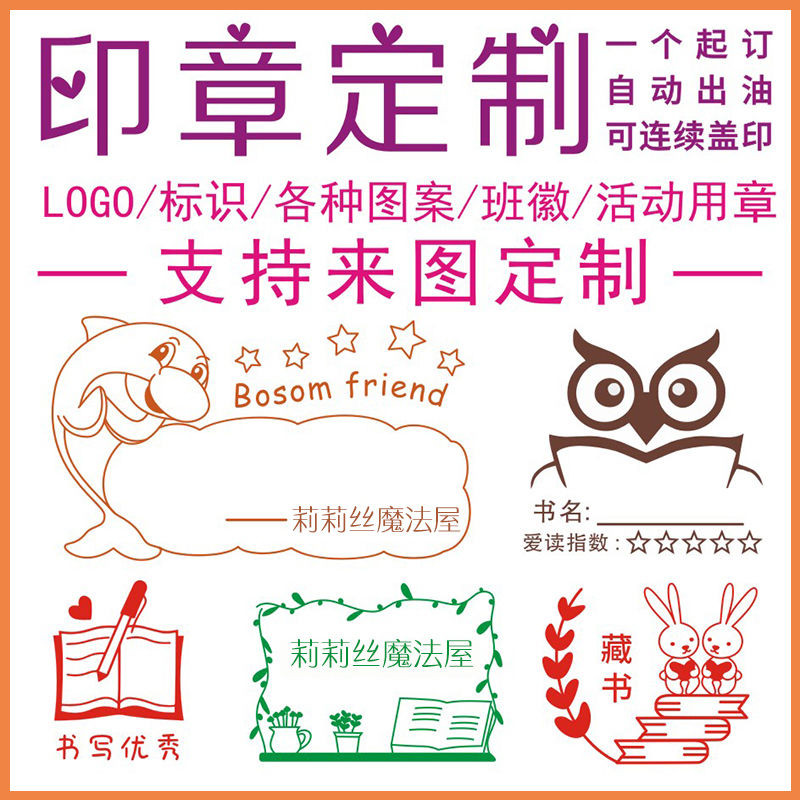 印章定制个性diy卡通人物风景藏书logo积分奖励刻字二维码图案章Penyesuaian meterai diperibadikan DIY koleksi buku cerita watak kartun ganjaran mata ga