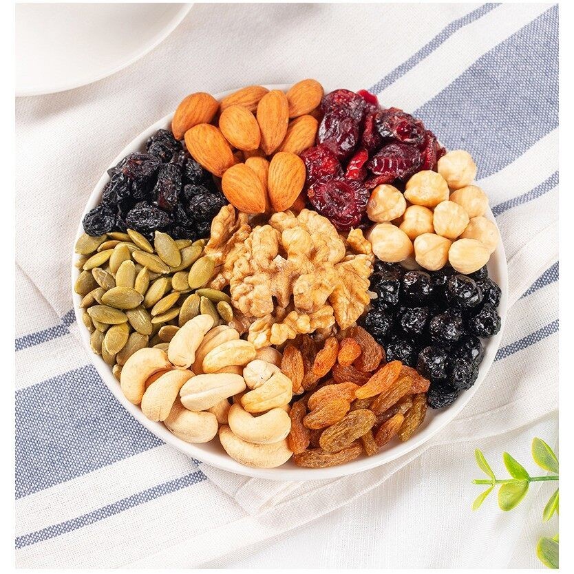 Daily Nuts Mixed Nuts Bulk Dry Fruit Snowflake Comprehensive Nuts 每日坚果混合坚果散装干果综合果仁坚果对身体非常有益,集合了植物的营养精华,含有丰富的矿物质、维他命E和B群,能给皮肤增添从内到外的光泽。 而坚果中含有的油脂属于不饱和脂肪酸,能减低胆固醇,也能保护我们的心脏。 不少医生更建议吃坚果来治疗便秘,因为里面的膳食纤维和油脂共同作用,有很好的润肠效果,其实在某种程度上是能够帮助瘦身的。4种坚果-核桃仁-巴旦木-腰果-南瓜子4种果干-蔓越莓-黑加仑-葡萄干-红枣片Mixed Nuts are very beneficial to the body. They are a collection of plant nutrients, rich in minerals, vitamin E, and B group, which can add luster to the skin from the inside out. The oils and fats contained in nuts are unsaturated fatty acids, which can lower cholesterol and protect our heart. Many doctors also recommend eating nuts to treat constipation, because the dietary fiber and oil inside work together to have a good intestinal effect it can help to lose weight to some extent.4 type of mixed nuts:-Walnut-Almond-Cashew nut-Pumpkin seed4 types of dried fruits:-Cranberry-Black currant-Raisin-red dates Classic mix nut Roasted premium Nuts: 1) Cashew 2) Almond 3) pumkin seed 4) Walnuts 5)Peanut Fresh and premium Dried Fruits: 5) Cranberry 6) Black Raisin 7) Black currant 8) Raisin Econ Pack -Walnut -Almond -Cashew nut -Peanut -Sunflower seed Fresh and Premium Dried Fruits: -Cranberry -Black currant -Raisin -banana slice Size: 500gm --------------------------------------------------------------------------------------- Granola Ingredient Lists : 1)Chocolate Granola 200g Ingredients: Traditional rolled oats, non-GMO canola oil, honey , dark cocoa powder, almonds , sea salt, unsweetened coconut chips, Crispy Milk cube 2) Low Sugar Wild Strawberry Granola 200g Ingredients: Traditional rolled oats, , non-GMO canola oil, unsweetened coconut chips, honey, freeze-dried strawberries, sea salt, Crispy Milk cube