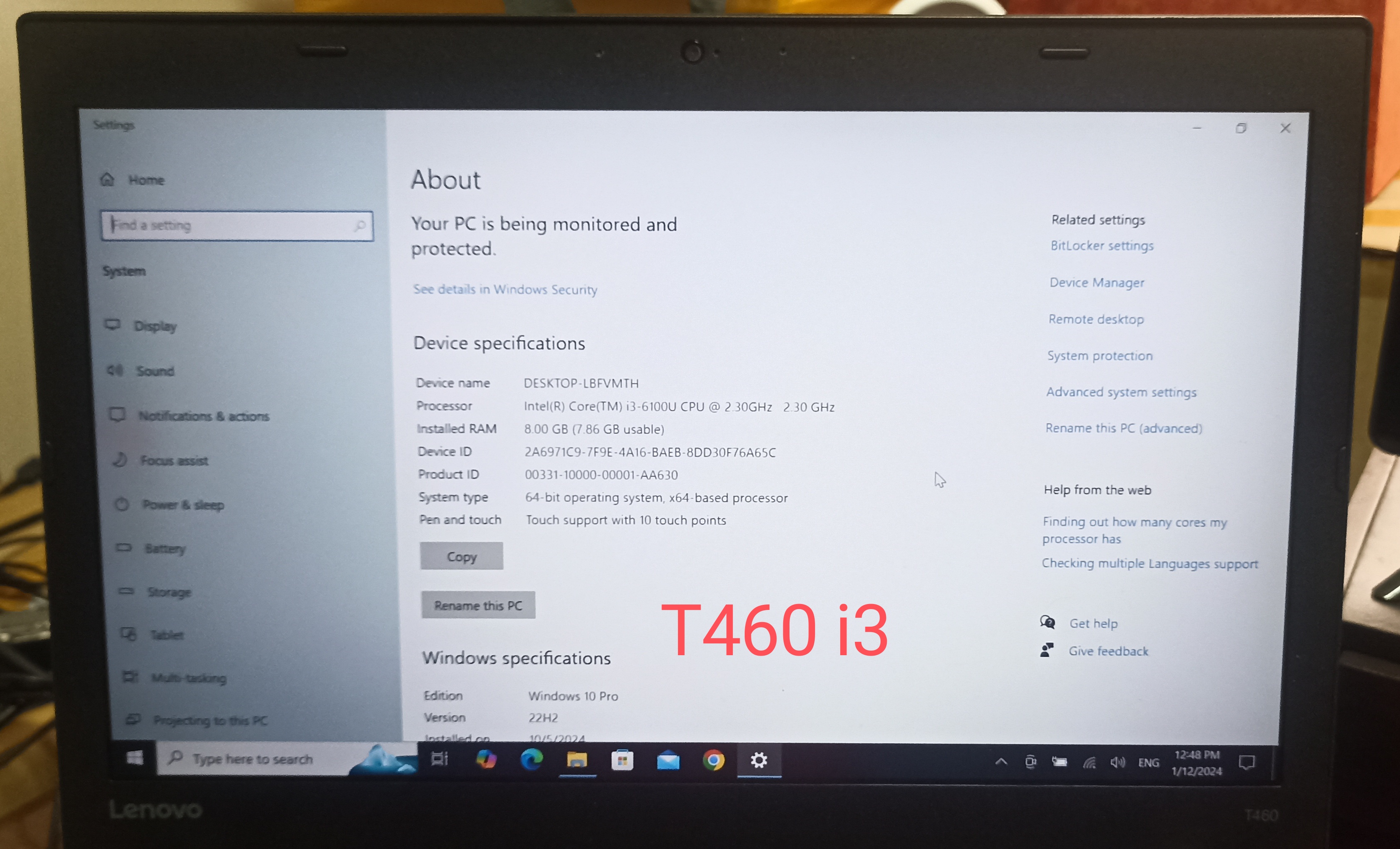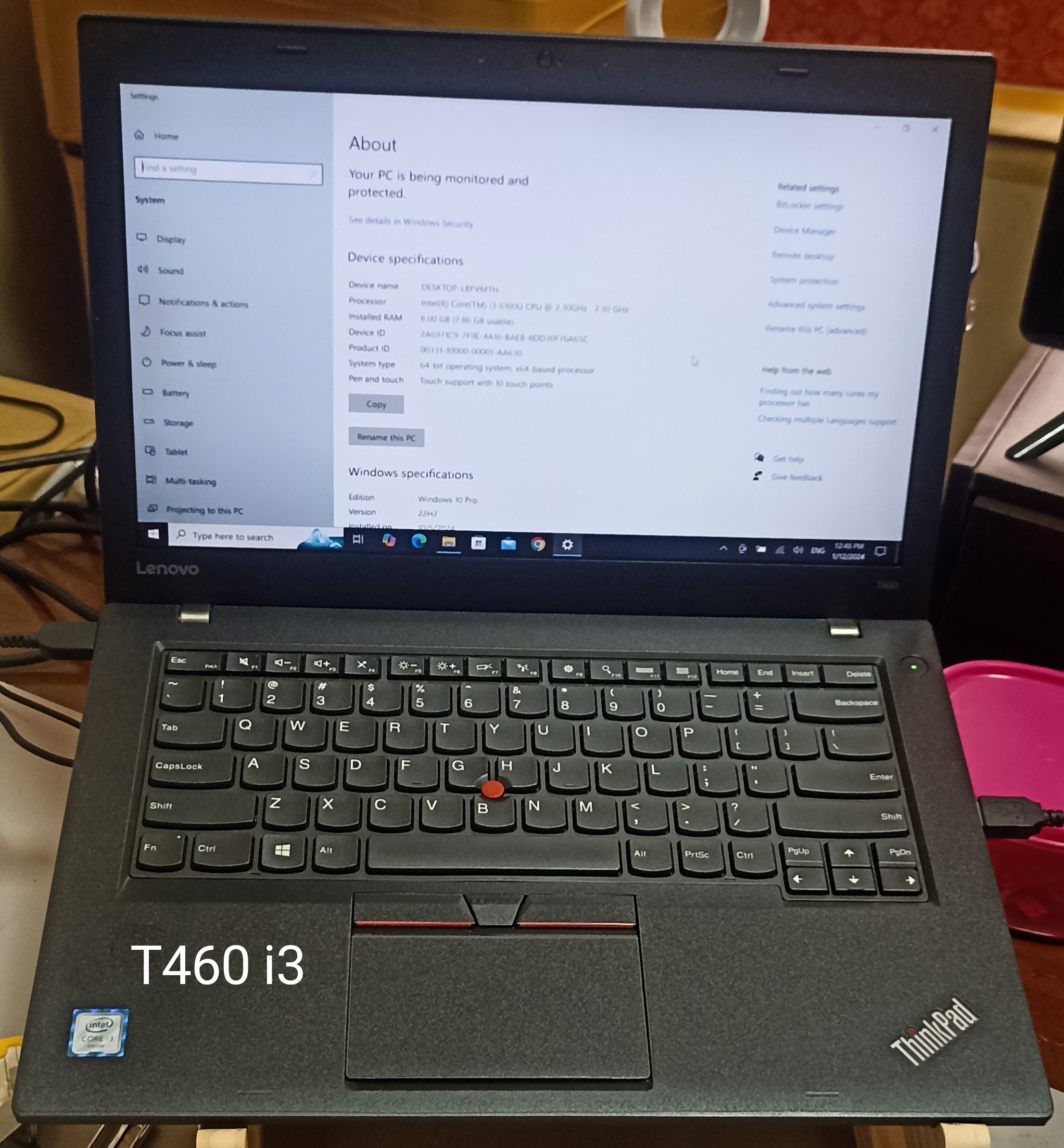 Notebook Thinkpad Lenovo T460 Touch Screen- CORE i3 - 6TH Gen - 8GB RAM - 256GB SSD Refurbished